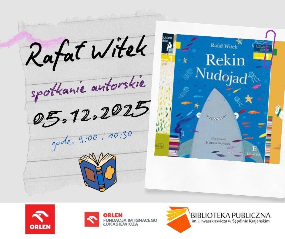 Miło nam poinformować, że 5 grudnia 2025 r. Bibliotekę Publicznąim. J. Iwaszkiewicza w Sępólnie Krajeńskim odwiedzi Rafał Witek – znany pisarz literatury dziecięcej, autor wielu lubianych przez najmłodszych książek, m.in. „Julka i Janek”, „Plaża tajemnic”, „Klub latających ciotek” czy „Zapiski łowcy tajemnic”. Tego dnia odbędą się dwa spotkania autorskie: godz. 9:00 godz. 10:30 Każde spotkanie ... DKK dla dzieci