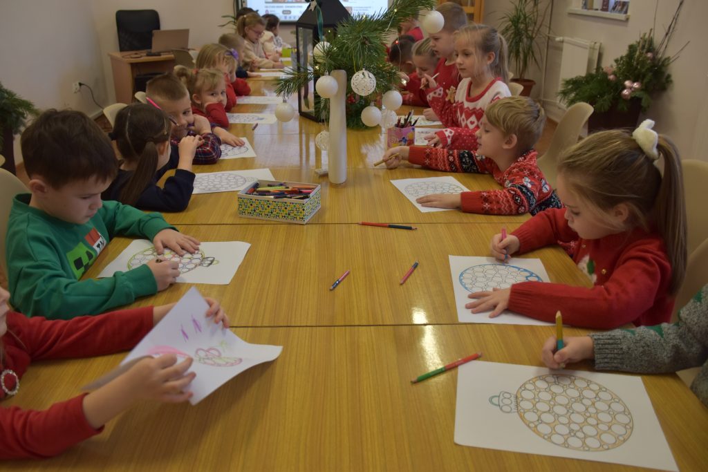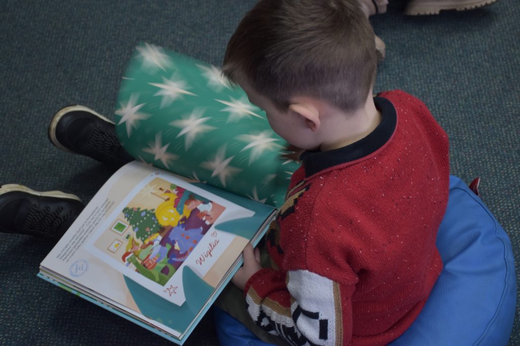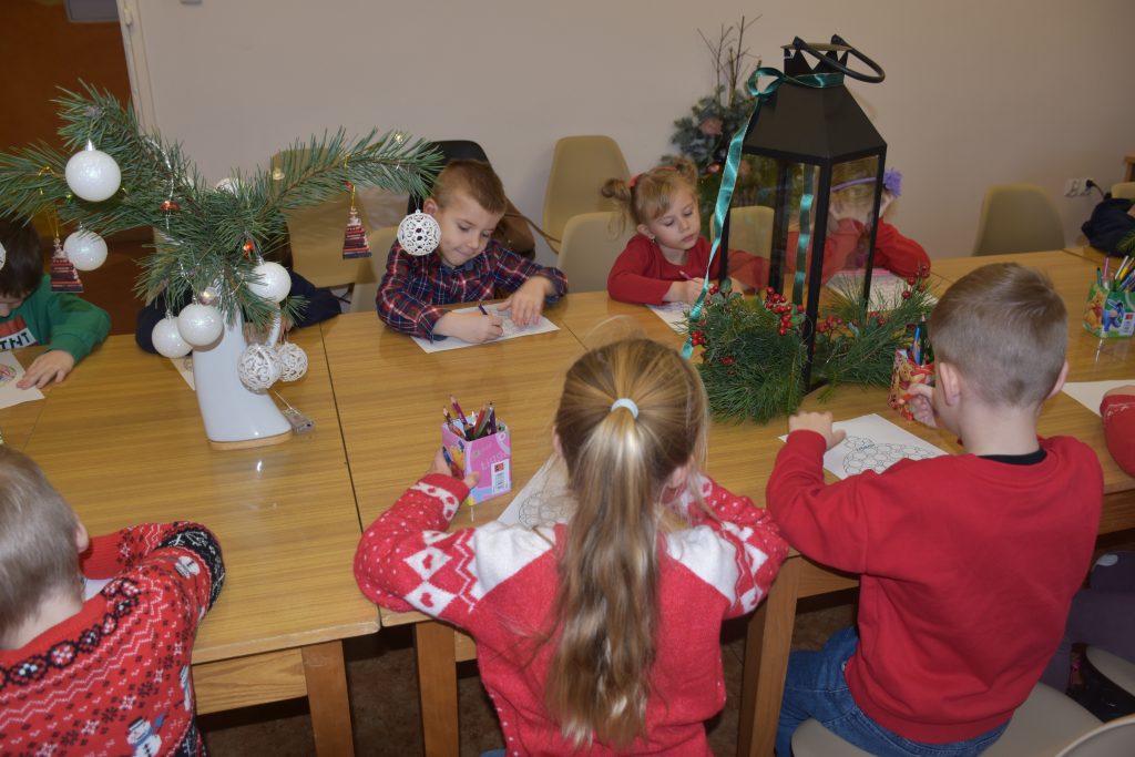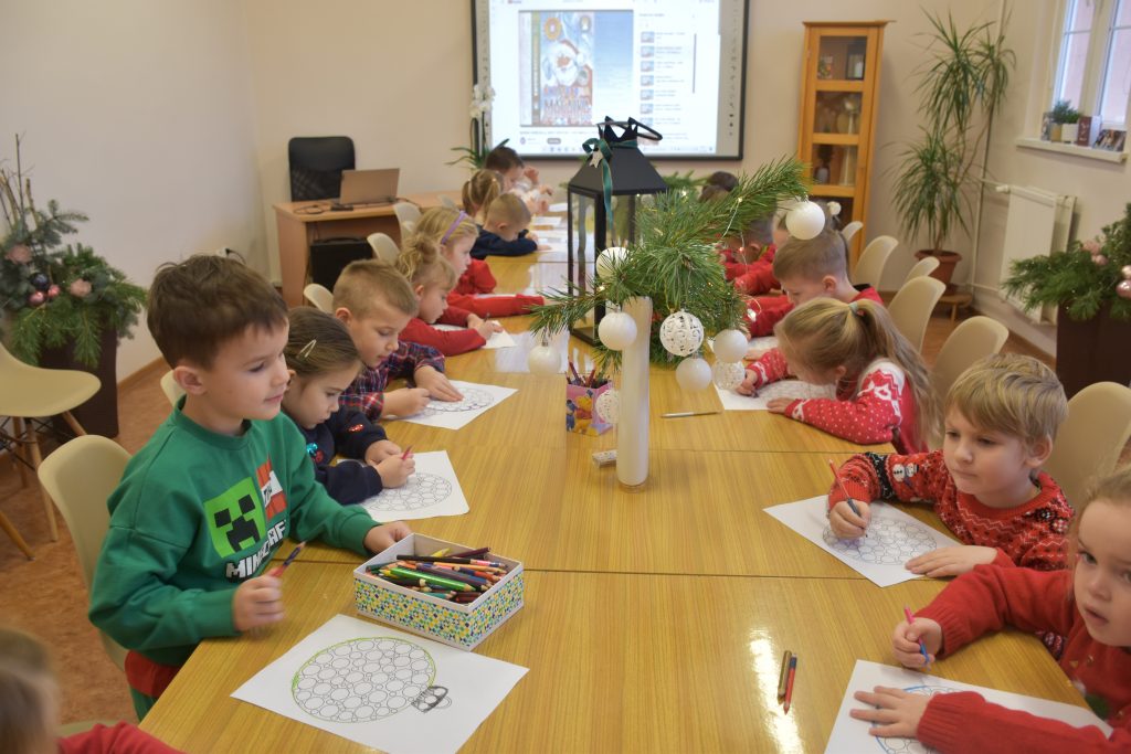Motywem przewodnim zajęć była książka „Prezenty Świętego Mikołaja”, do której tekst i ilustracje stworzyli Barbara i Tomasz Piątkowscy.