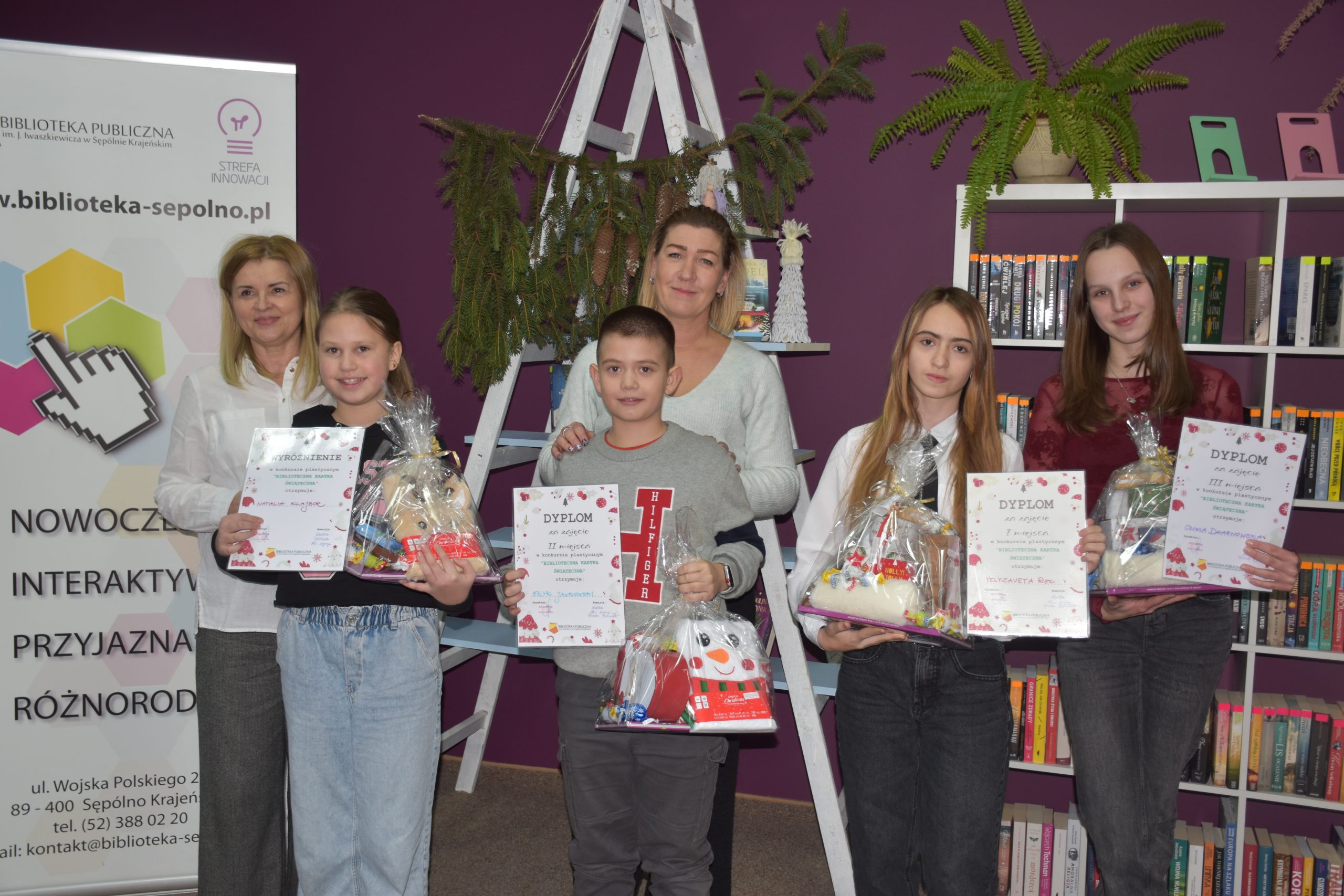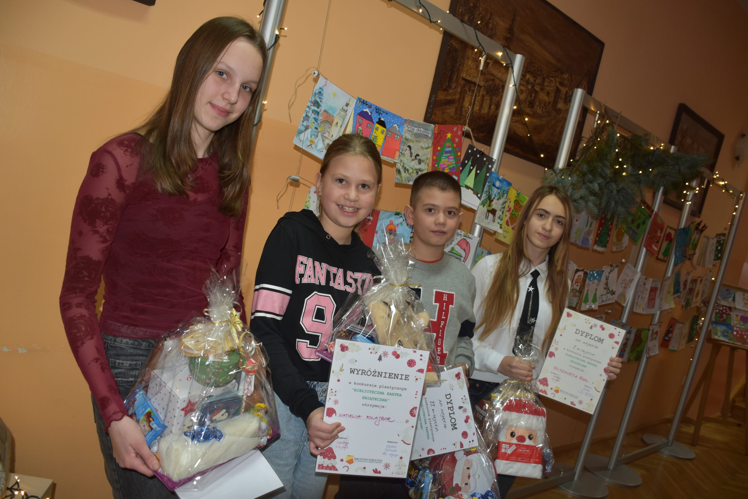 W poniedziałek laureaci konkursu „Biblioteczna Kartka Świąteczna” odebrali gratulacje, dyplomy, upominki..