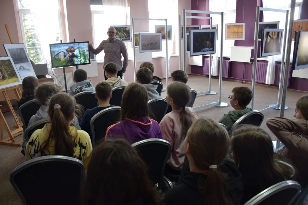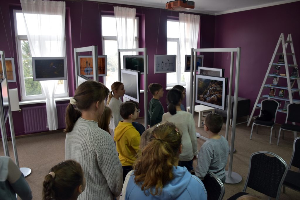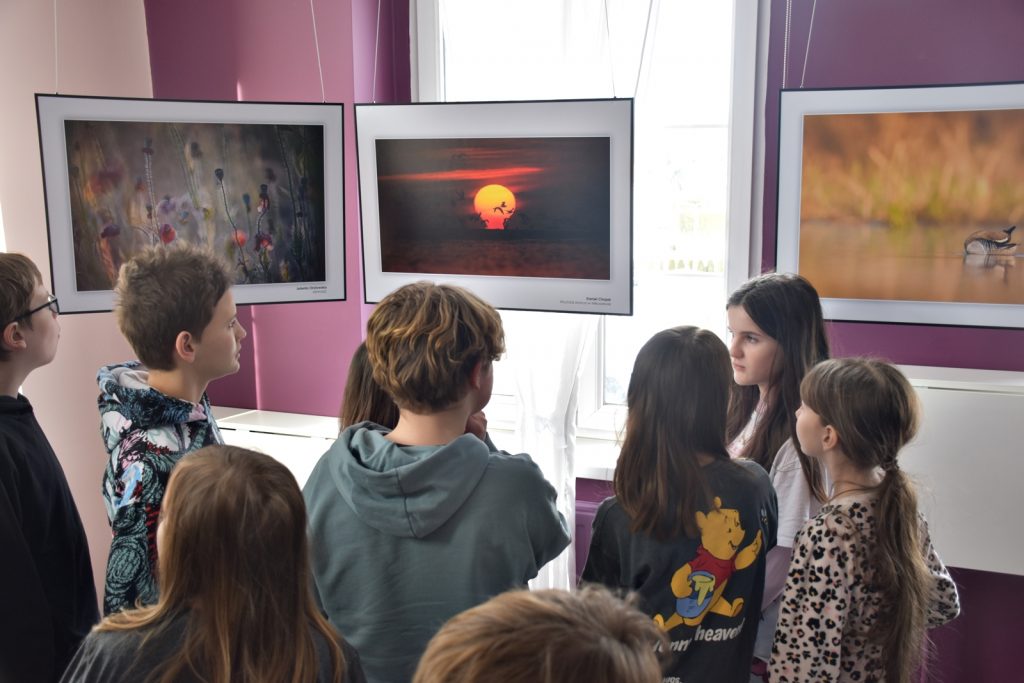 Część grup miała niezwykłe szczęście. Po wystawie oprowadziła je Pani Jolanta Orzłowska – autorka jednej z prac oraz członkini Okręgu Pomorsko-Kujawskiego Związku Polskich Fotografów Przyrody. Lepszego przewodnika po wystawie nie można było sobie wymarzyć! Pani Jolanta w fascynujący sposób zdradziła młodzieży tajniki uchwycenia tego idealnego kadru. Wielkie brawa za cenne rady oraz dawkę inspiracji!