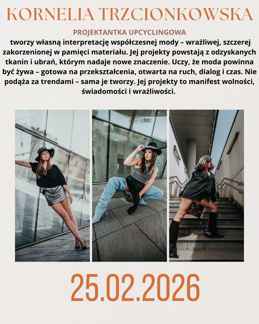 Już jutro w bibliotece odbędzie się niecodzienne spotkanie uczniów szkół ponadpodstawowych z projektantką upcyklingową Kornelią Trzcionkowską, która tworzy autorską, świadomą modę z odzyskanych tkanin. Projektantka prezentowała swoje kolekcje podczas London Fashion Week. Jej projekty, oparte na precyzyjnym krawiectwie i szacunku do materiału, pokazują, że moda nie musi podążać za trendami – może je wyznaczać.