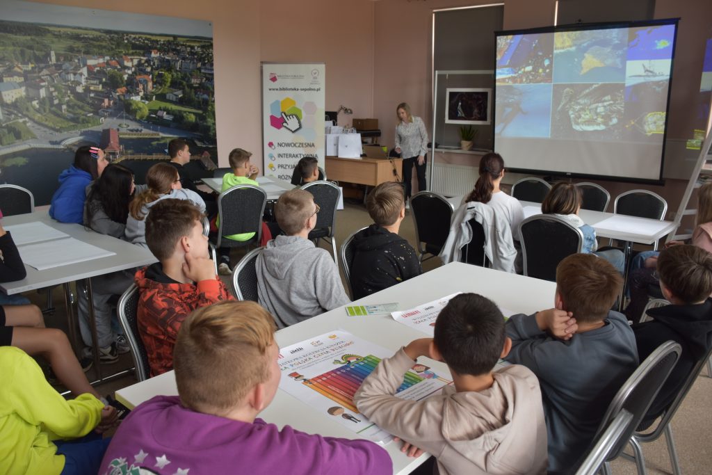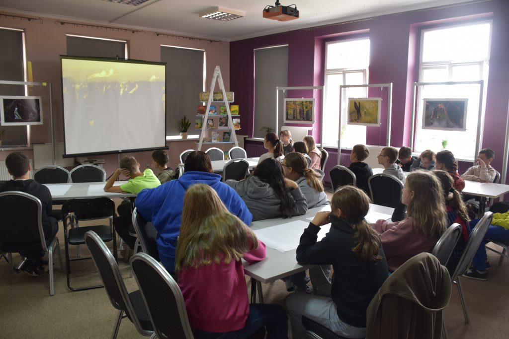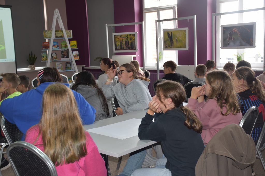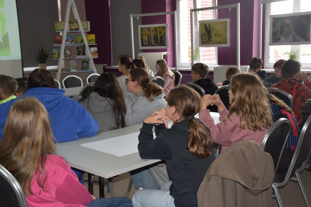 W piątek naszą bibliotekę odwiedziły klasy 6, by wziąć udział w wyjątkowych zajęciach „Dzik nie świni w lesie. A Ty? W NATURĘ Z KULTURĄ!”